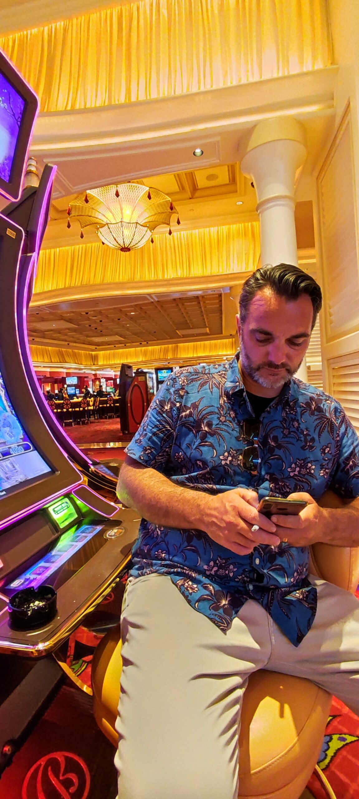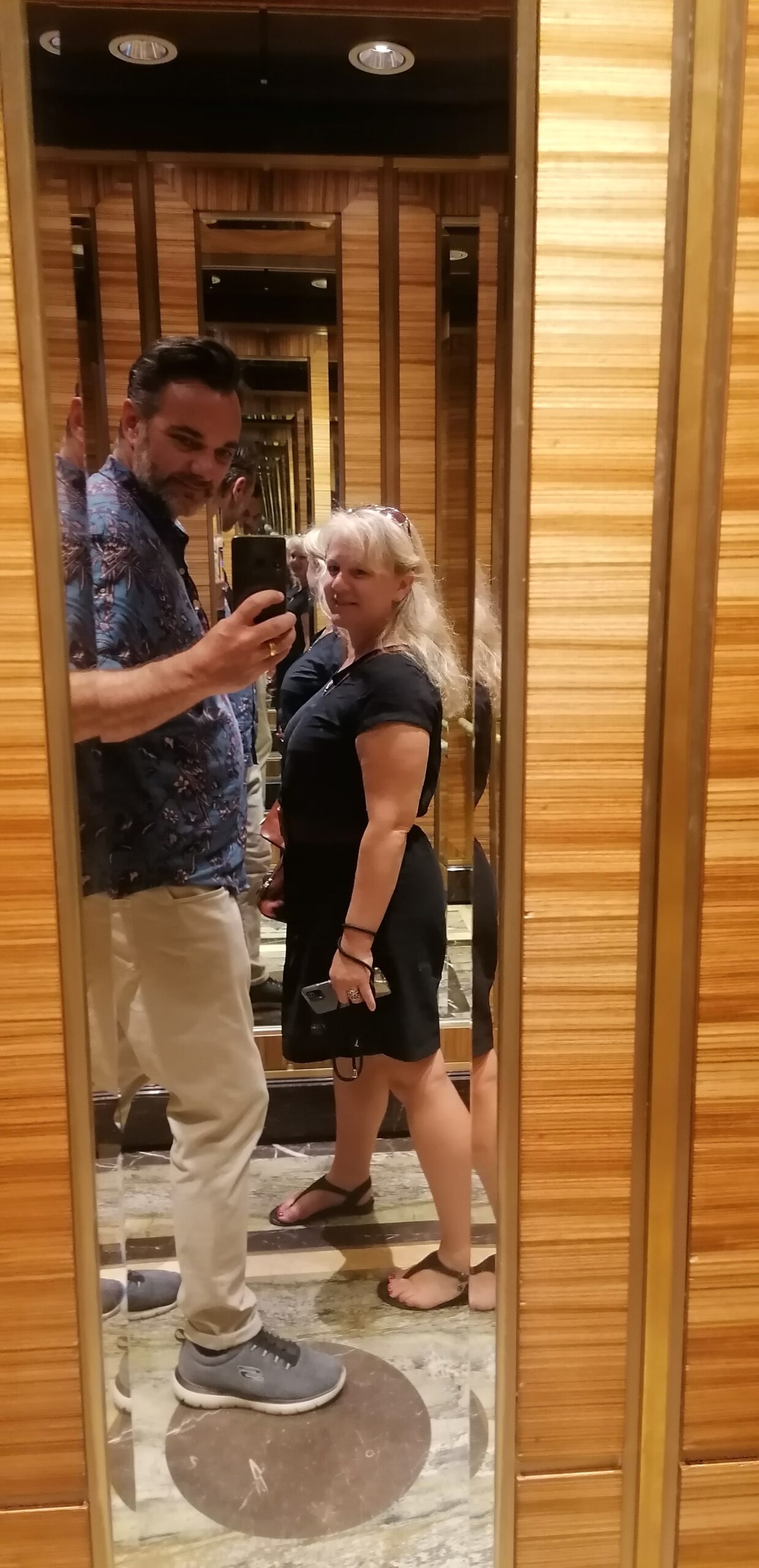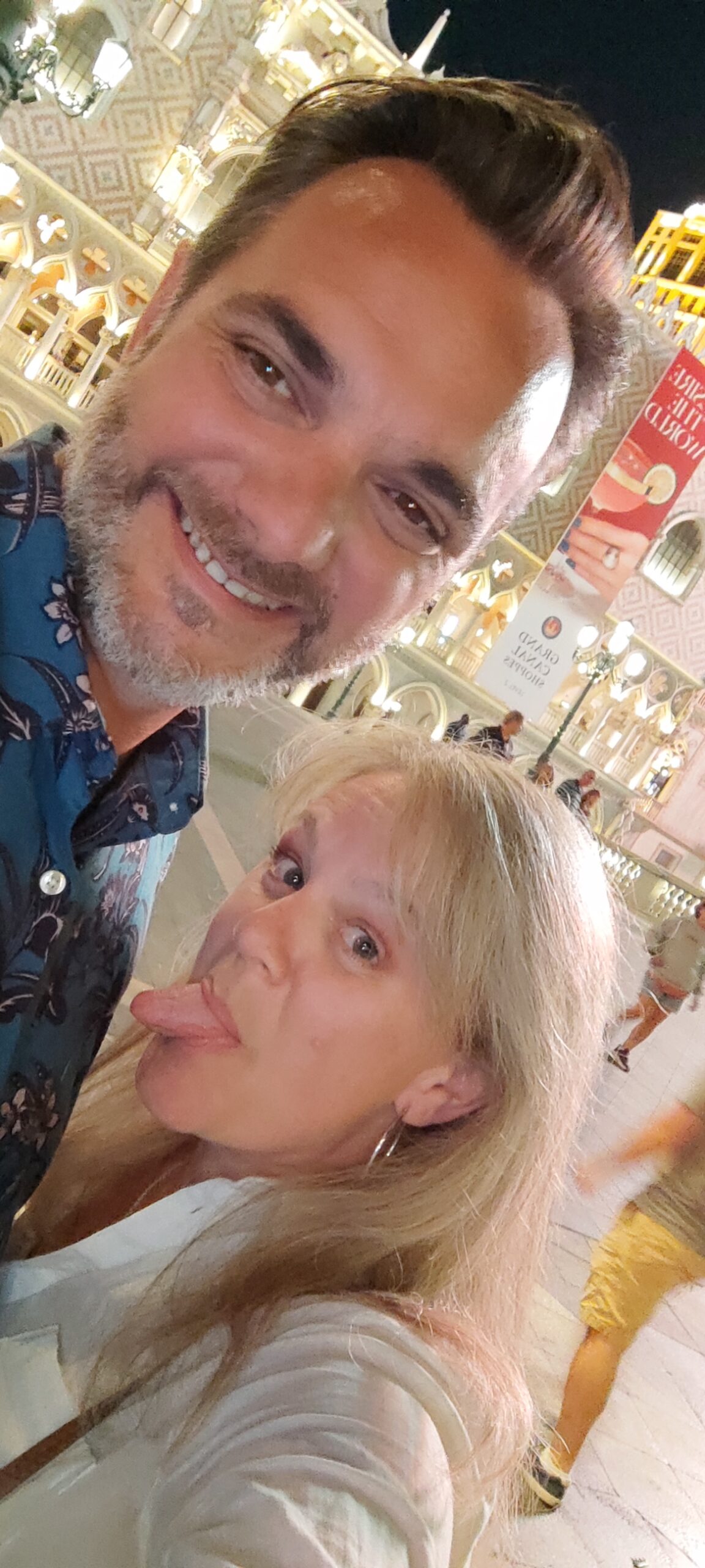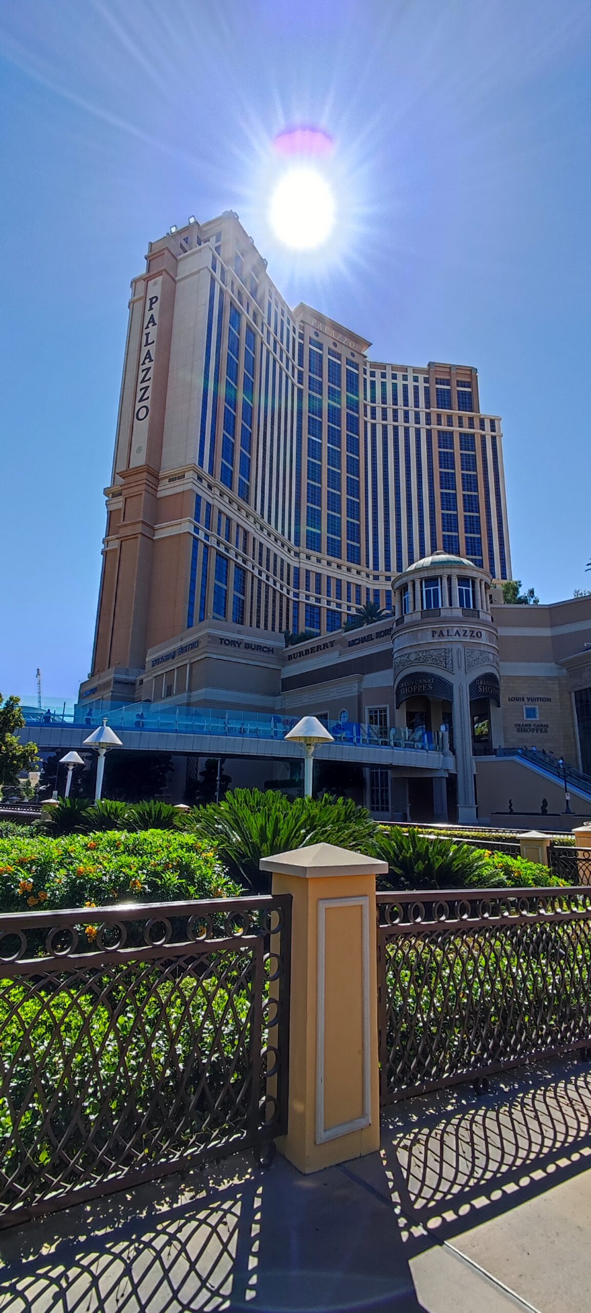 Der erste Eindruck ist ein heftiger Kontrast zu den Hotels, welche wir bisher auf unserer Reise gesehen haben: Alles ist pompös, riesig, und übertrieben in jeder Hinsicht. Dieses auf italienischen Flair getrimmte Hotel gehört zu den besseren und schöneren in der Stadt und hat sich ganz dem Thema „Bella Italia“ verschrieben. Das merkt man dann auch überall: An der Architektur, dem Dekor, der Fahrstuhlmusik etc, etc. Highlight unseres Hotels ist ein Indoor Canal Grande mit echtem Wasser und Gondoleris, sowie Tag und Nacht Szenarien auf den Palazzos und deren Restaurants und Shops. Irgendwie sehr schräg aber auch beeindruckend.