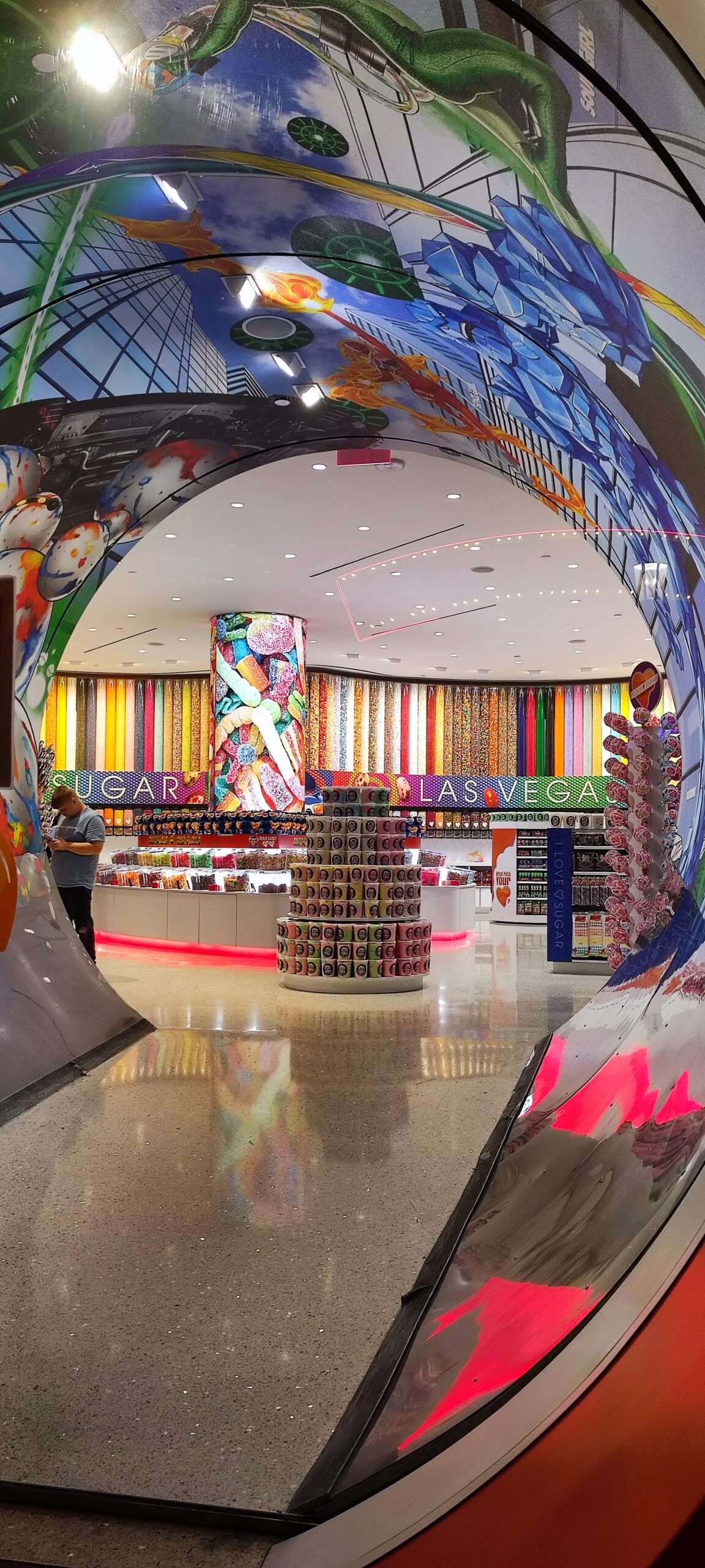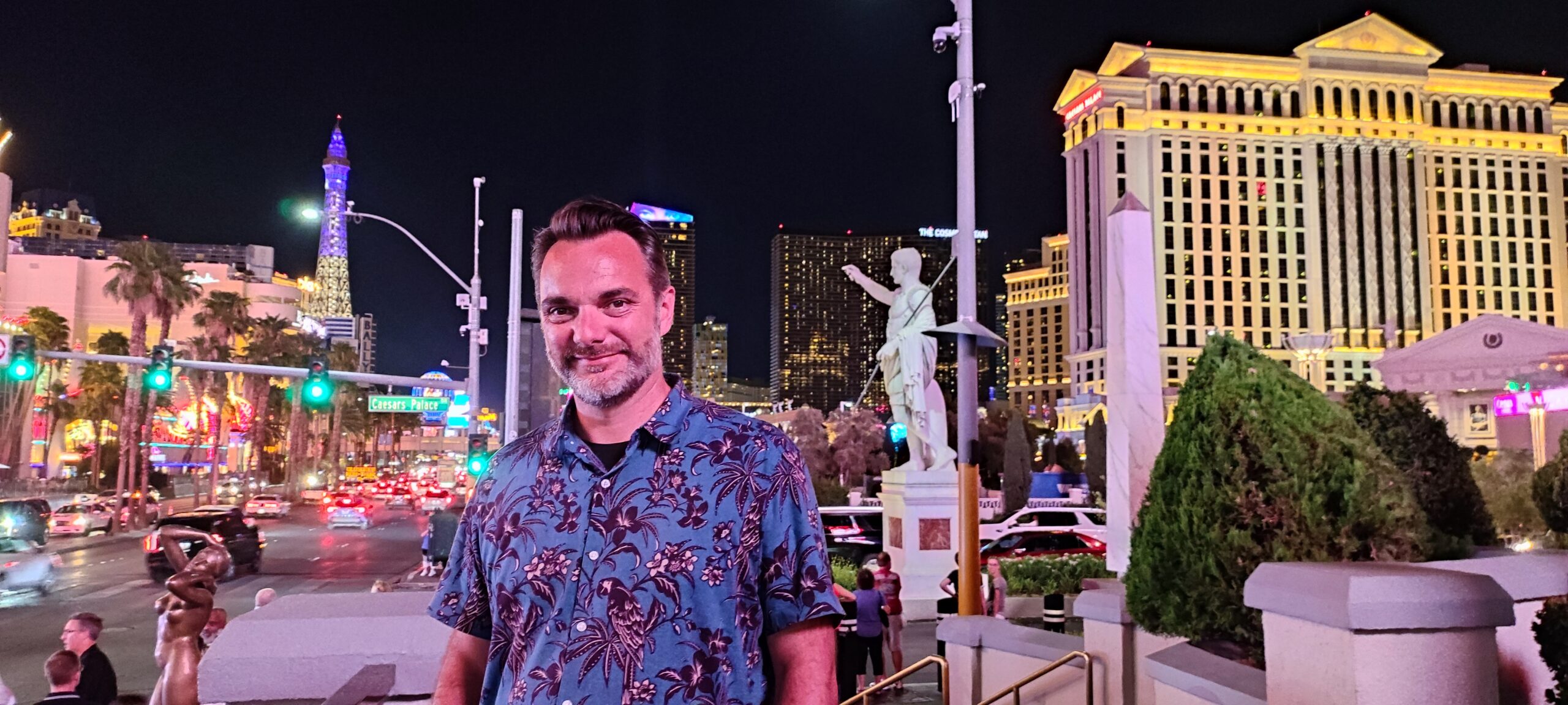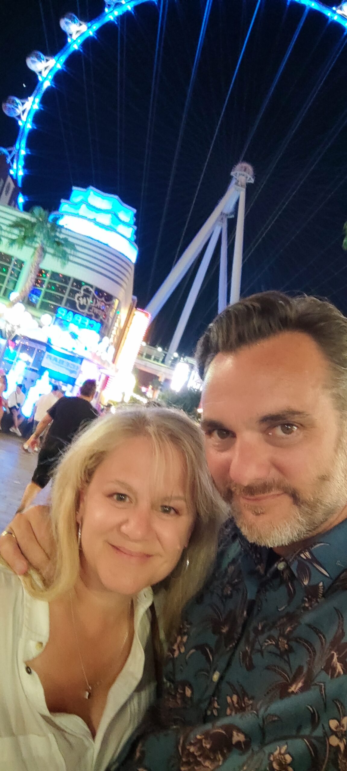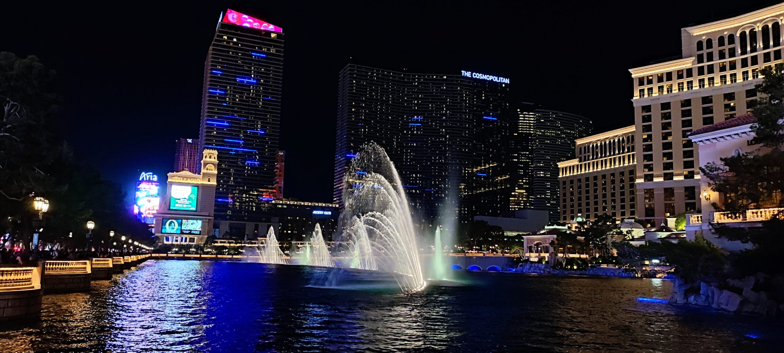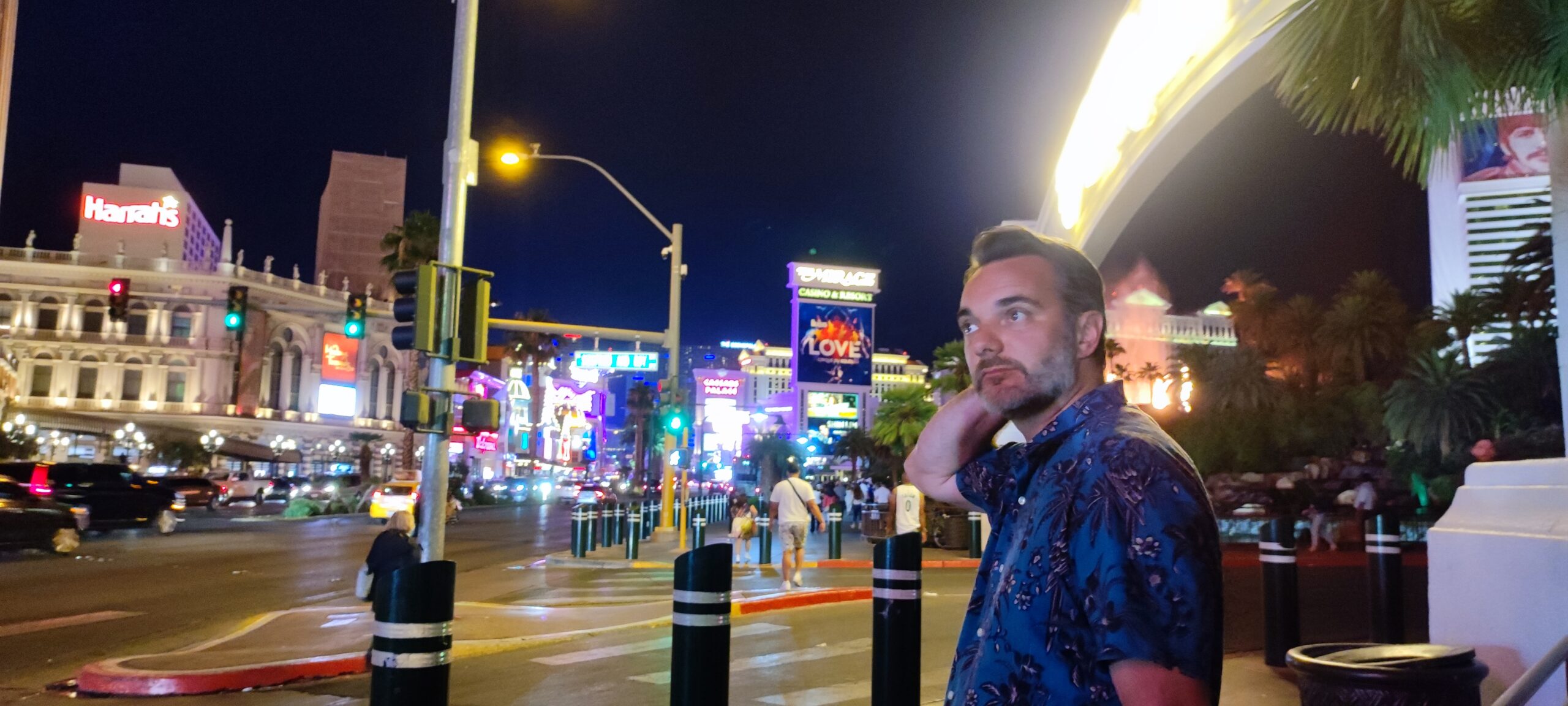 Man kann eigentlich den ganzen Urlaub nur in seinem Hotel verbringen. Alleine in unserem gab es 19 Restaurants, zwei 24h-Casinos und etliche Shops. Wir wollen aber auf den Strip und uns den Mythos Las Vegas mal genauer anschauen. Draussen angekommen fällt uns als erstes die grosse Masse an Leuten auf. Da wo wir zuletzt waren, war es trotz einiger Touristen doch eher übersichtlich. Hier in Vegas gibt es keine Übersicht mehr. Eine Mischung aus Sound- und Licht-Effekten prasselt auf den Strom feiernder Menschen in unterschiedlichen Gemütszuständen ein. Wir lassen uns mittragen und staunen nicht schlecht, dass auch alle Hotels um uns herum ähnlich gross wie unseres in ihrem Angebot sind und es auch dazwischen eine Vielfalt an Restaurants, Bars, Shops und Entertainment gibt. Eine Reizüberflutung par excellence, die man kaum verarbeiten kann und mich immer stiller macht.